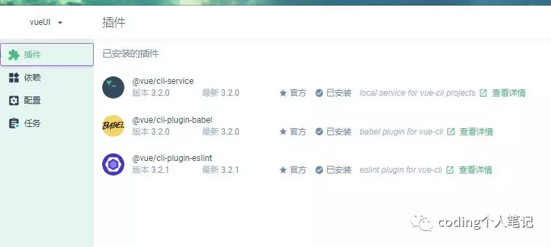 这边的各个功能都可以去使用,包括了启动项目、添加插件、管理依赖配置eslint规则、还能看见各个模块跑起来用了多久、打包的图标功能等等都非常直观,真的趋向傻瓜式的新建。