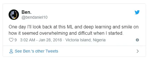 我不确定我能否被称之为机器学习新手,因为我更关注移动开发。与机器学习团队共同研究训练模型来为公司解决问题的这段经历,让我十分激动。我期待下一次机会。