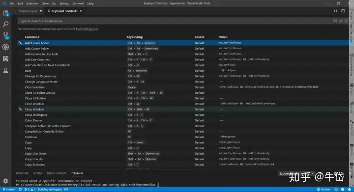1. 按下ctrl+K,再按下ctrl+S,查看快捷键列表。