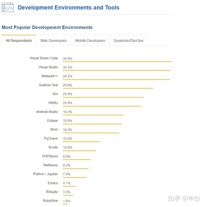 随着2019年的到来,Stack Overflow对2018年的IT生态调查显示:Visual Studio Code超过Visual Studio一跃成为榜首,成为“最受欢迎的开发环境”,没有之一!