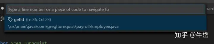 在搜索栏前输入”@“,在当前文件中搜索特定符号: