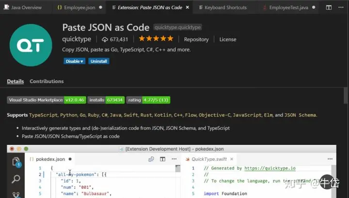直接打开命令板,输入Paste Json As Code的命令即可,十分方便。