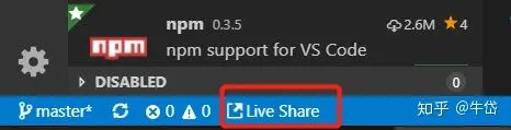 enable该扩展,reload你的VScode,然后看到左下角的Live Share图标: