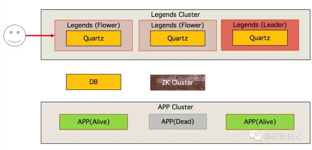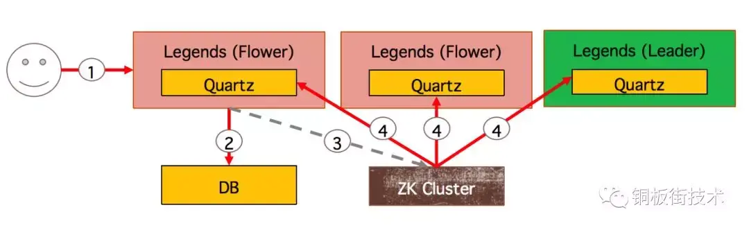 Quartz 框架触发任务执行 (如果发现当前机器非 Leader,则直接结束)。