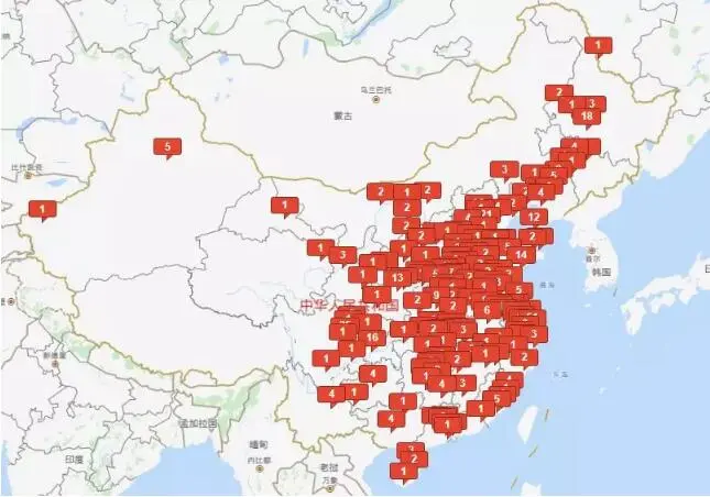 时近春节,如此热闹的节气小罐茶的销量尚且如此,那么平日的线上销售量可想而知。不过,在质疑其销售额前,我们要知道它的门店已遍布全国,门店数量十分可观,如图: