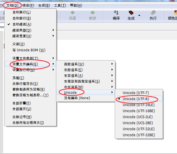 我们可以通过设置文件的编码方式为 UTF-8 来解决这一问题: