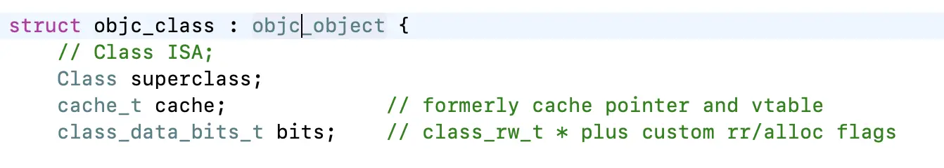 在runtime源码中class的定义为: