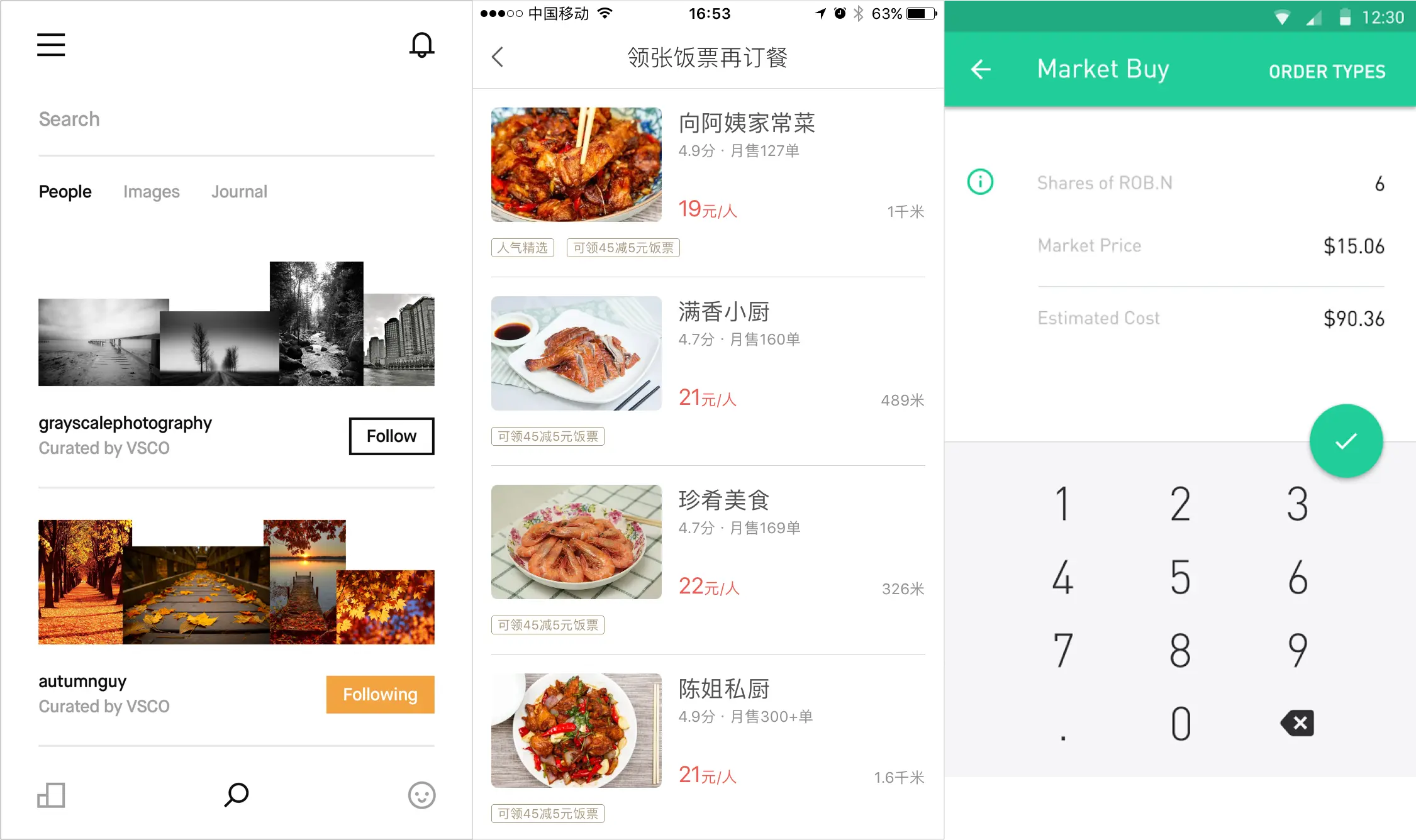 图1(1.摄影图片分享app-iOS系统;2.回家吃饭-iOS系统;3.记账软件-Android系统)