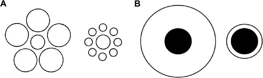 Representations of the (A) Ebbinghaus-Titchener size-contrast illusion and (B) Delboeuf illusion.
