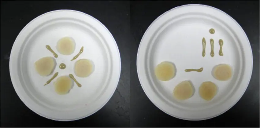The balanced and unbalanced plate arrangements utilized by Zellner et al. 64. In the coloured presentations, the lines of tahini were green and the dots were red. 备注3