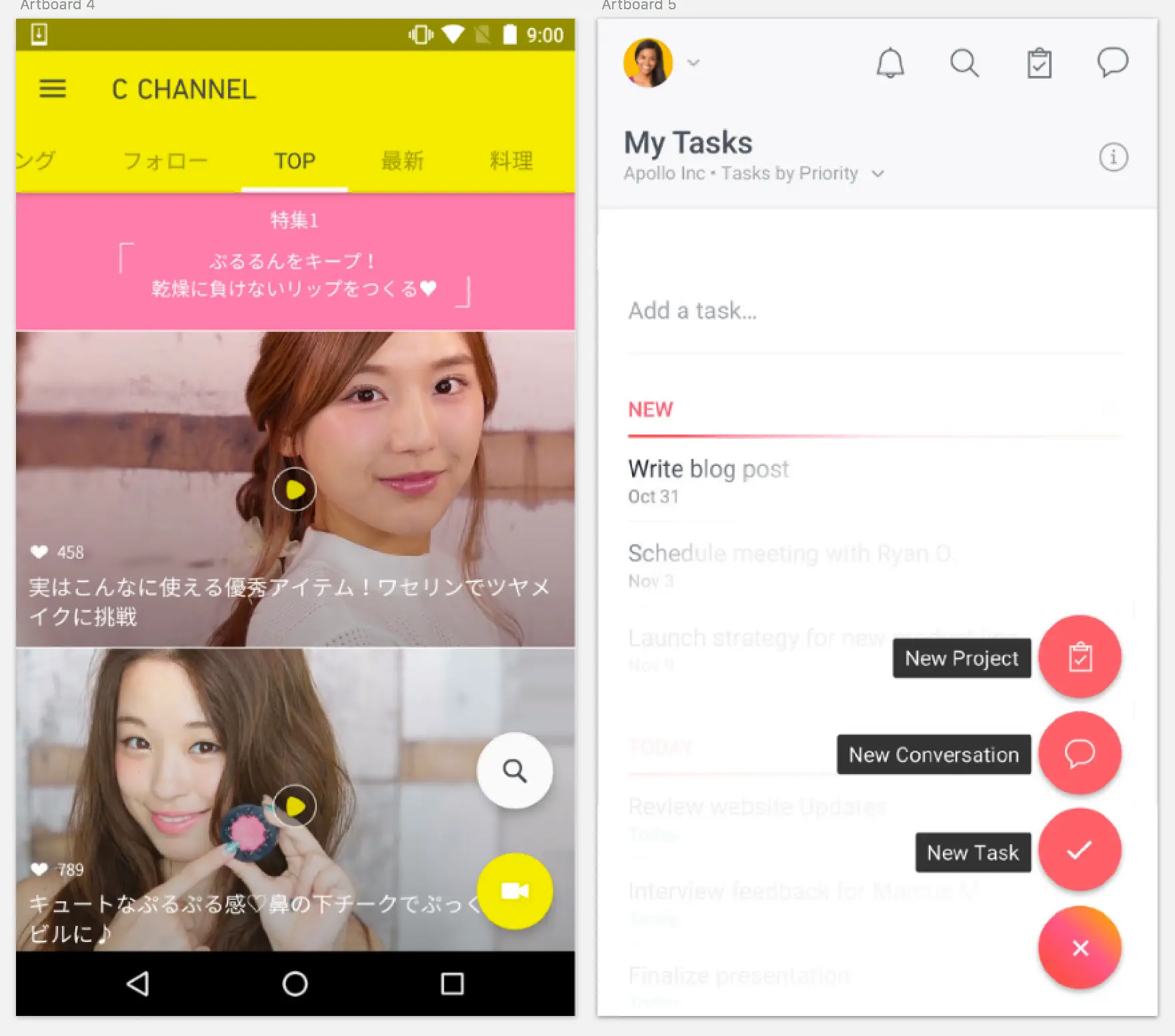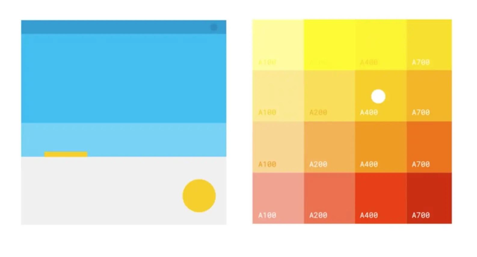 通常我们定义App色彩调性有几种常用类型:无色彩、单一主色、主次色彩搭配。色彩视错觉的色彩搭配让我想到了MD的色彩Guild-line,在不同色彩环境中无论哪种类型,都能通过周围色彩来影响主色,并让周围色帮助你表达App的情感。
