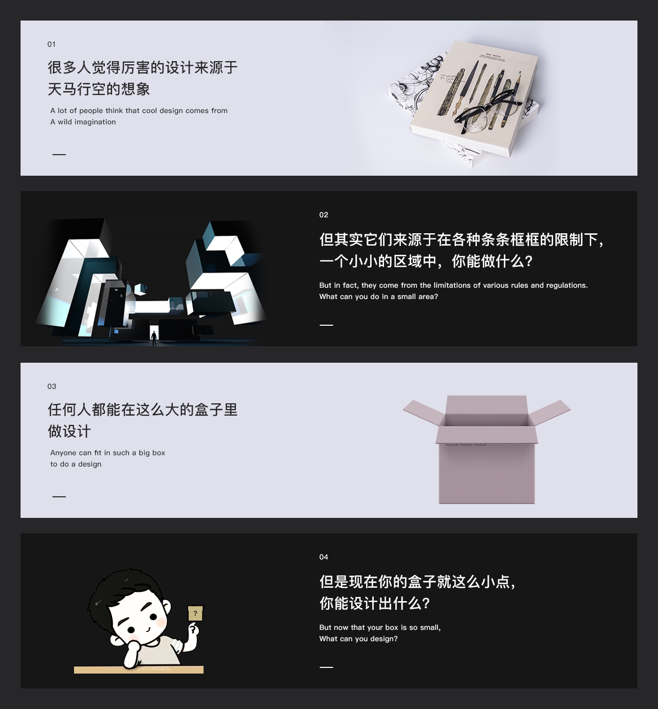 也许看完这个你更能理解规范对于UI的一种作用,盒子就像我们的手机,展示空间就那么大,你需要在一定的限制内发挥你最大的能力去做出好的设计。