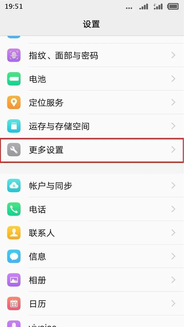 此刻重新回到vivo Y93s的设置主界面上,找到“更多设置”并点击进入,这个时候,我们就可以找到开发者选项一栏并进入开发者选项.