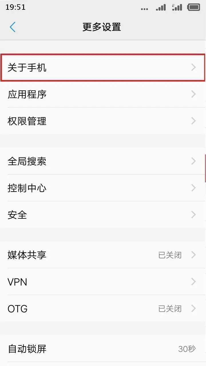 接下来,找到“关于手机”栏目,点击进入“关于手机”界面。