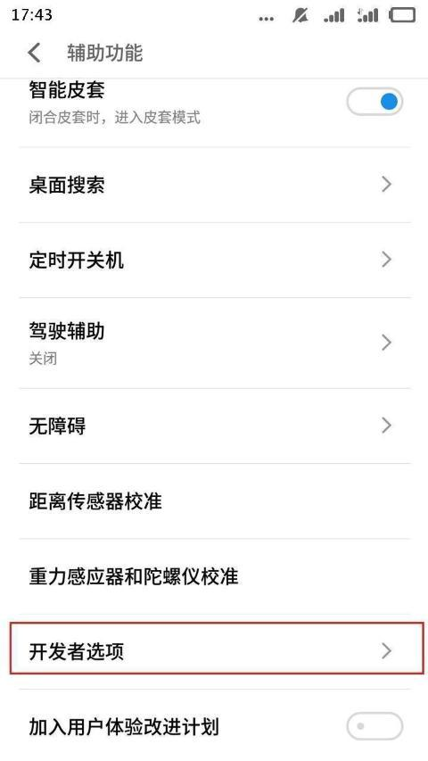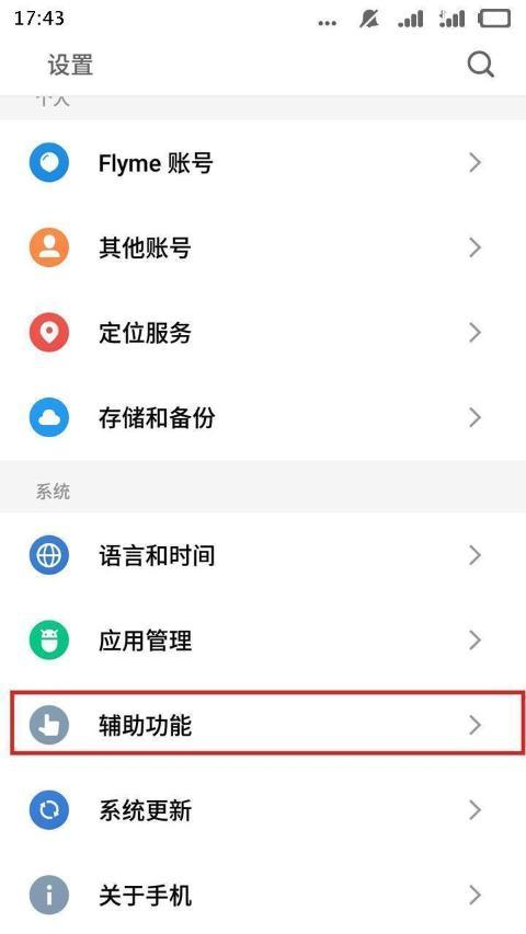 这时候,重新返回魅族魅蓝A5的设置主界面上,找到“辅助功能”并点击进入,这个时候,我们就可以找到开发者选项一栏并进入开发者选项.
