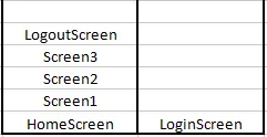 有下面的这种场景,我们进入到Screen3页面后,要跳转到Screen4页面,不过点击返回按钮,并不想回退到Screen3页面。也就是想将Screen4的元素插入栈顶的同时,将Screen3的元素夜进行移除。
