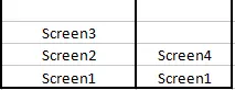- 如果想在弹出新路由之前,删除路由栈中的部分路由。比如只弹出Screen1路由上面的Screen3和Screen2,然后再push新的Screen4,堆栈的情况如下图: