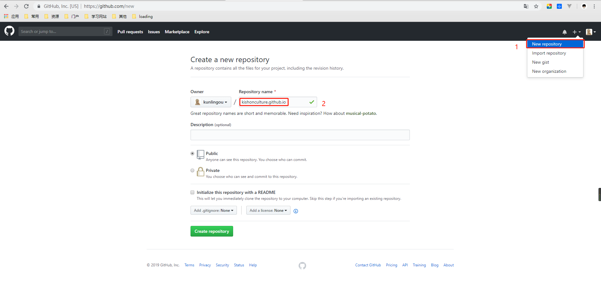 Github建立静态网站(不需要购买服务器) 方寸木 2019-02-03 2,914 阅读1分钟 git源码 登录github,建立repository repository名字格式固定:kishonculture.github.io index.html为首页 配置Github Pages 获取ip地址 cmd窗口获取ip地址: ping www.用户名.github.io 配置域名解析ip 建立CNAME文件 用编辑器打开输入域名,放在仓库根目录即可