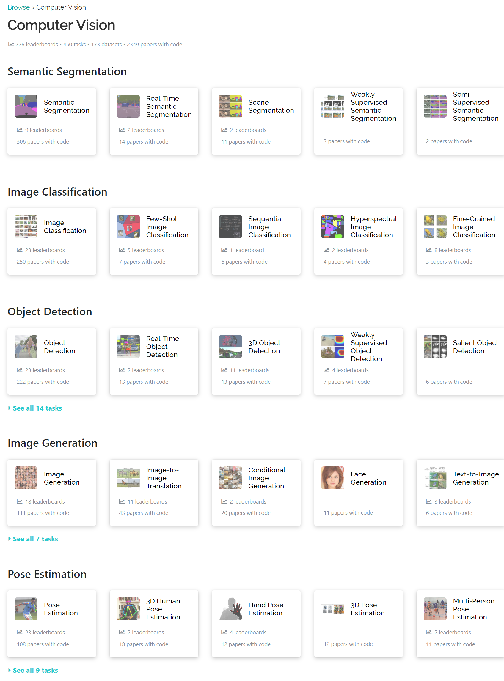 点击计算机视觉这个大类,可以看到具体又划分了450+个子任务,如下图所示: