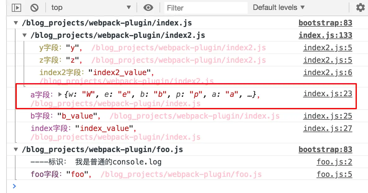 log.a,通过自己的webpack插件自动补全字段标识a字段:,加入文件路径,轻松支持打印颜色效果,相同文件的日志信息可折叠,给你一个简洁方便的调试环境。