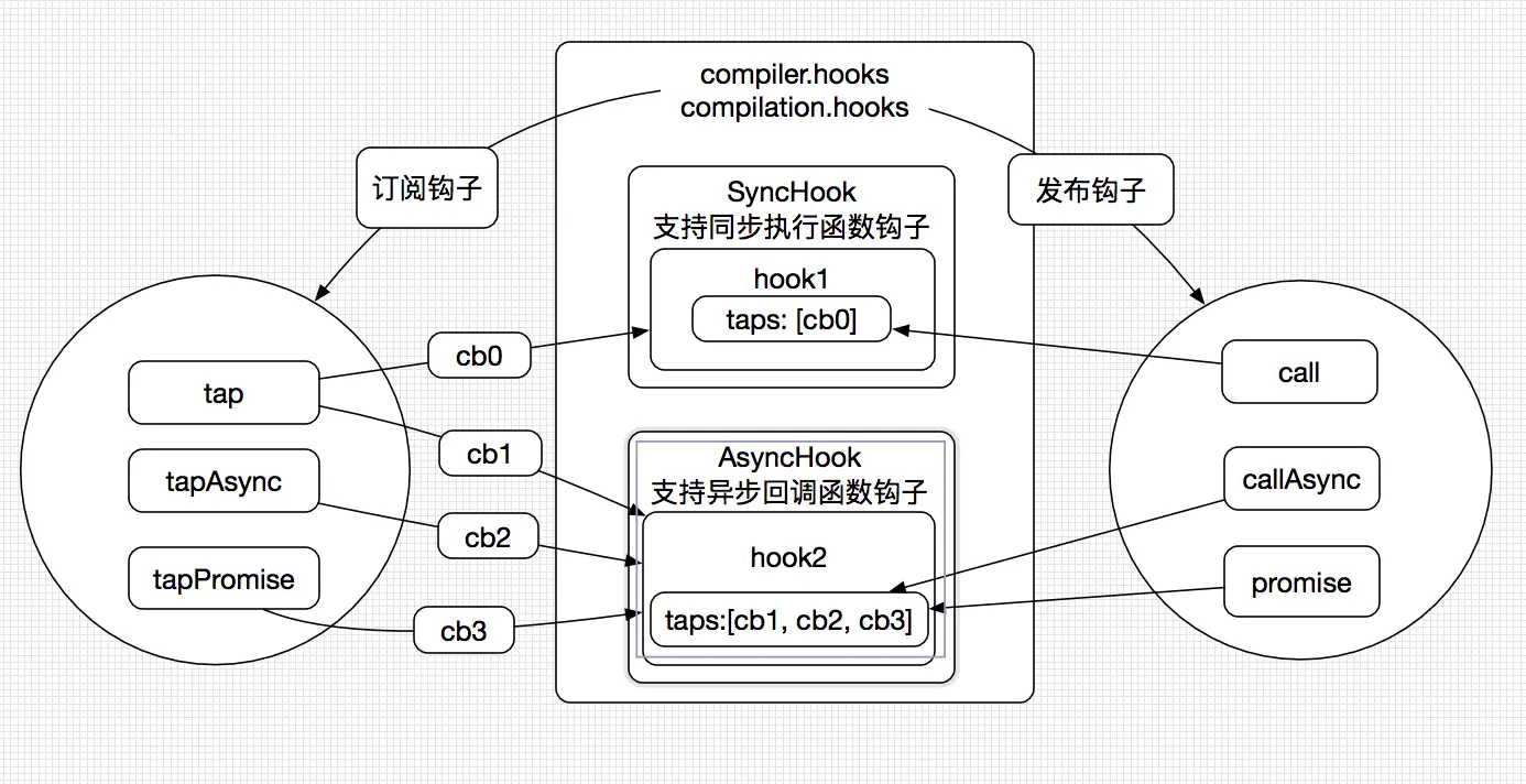 tapable类(源码)的库,这个库提供了一些Hook类,内部实现了类似的事件订阅/发布系统。 -