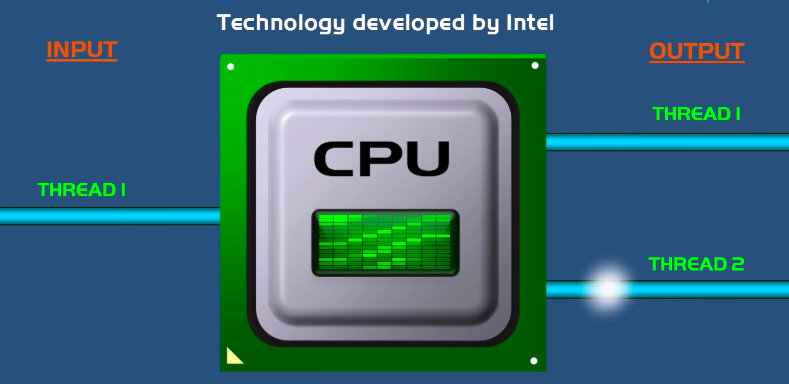 我只有一张嘴,我可以用手抓一片食物,送到嘴边,然后在嘴busy的时候,抓起下一片食物,继续送到嘴边。如果出现这种情况:当我的嘴已经吃完那一片食物了,这个时候手还没有将食物送到嘴边,这时候我的嘴就处于空闲状态。假如我有两只手,即使我的嘴并不能吃得更快,但我的嘴也不需要浪费任何时间,可以一直处于busy的状态。这就是hype-threading(超线程),一个processor,然后加上很智能的调度系统,使得processor可以一直处于busy的状态。