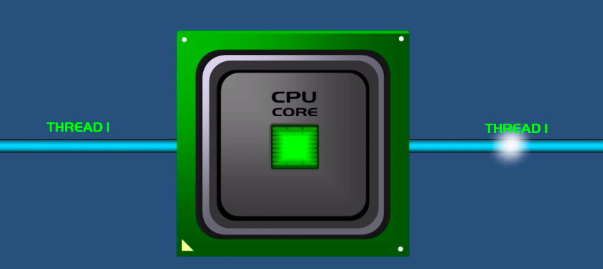 超线程是intel开发的,已经有10多年的历史了,它可以在同一时刻,执行两个线程,从而提高了单个CPU core的效率。如下图所示: