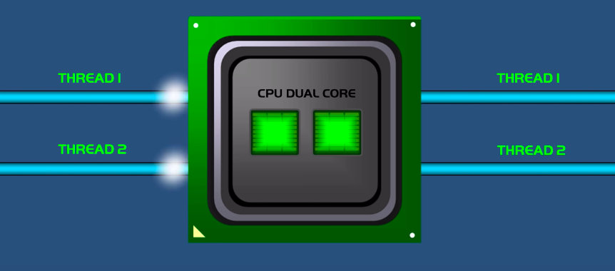 接着,CPU设计师开始往一个CPU里面添加更多的core,现在一个CPU就可以同时运行多个线程了: