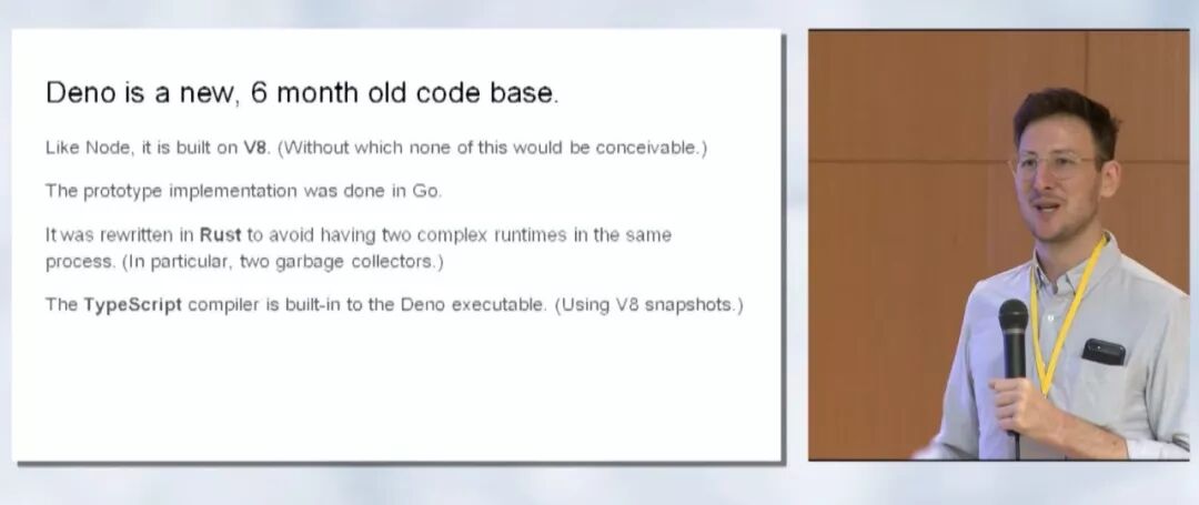 说到 Deno 相信大家都有所耳闻。 Deno 一诞生就占据了前端娱乐圈的头条封面。Deno 是由 Ryan Dahl(Ryan 在 2009 创造了 Node.js) 在 2018 年创造的一个基于 V8 的安全的运行时。现在距离 Ryan 在 2018 年欧洲 JSConf 上第一次把 Deno 带入到大众开发者前已经过去了大半年的时间,这半年的时间 Deno 发展如何? Deno 的初始原型是使用 Go 开发,后来考虑到 Go 和 V8 都有复杂的垃圾回收机制,最终使用 Rust 重写。目前 Deno 内部已经内置了 TypeScript 编译器,并利用了 V8 的 snapshots 做了启动时的优化。 Deno 的文档目前也已经相对完善,如果大家想尝鲜也可以从 https://deno.land/ 开始。Deno 作为 Ryan 大神颠覆 Node.js 之作必然是值得关注的。