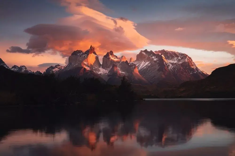 智利百内国家公园的Pehoe湖,今年4月我和周游去的第一天就遇上了满天红云。当时我着急的来来回回跑,拍了好几个构图,最后发现简单的倒影反而是最好的,宁静而自然。