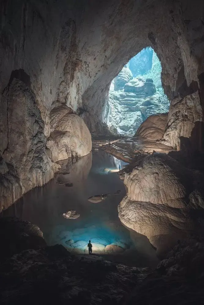 这张照片拍摄于越南的韩松洞,图中的3个人物都是我们的户外向导。或许读者可以通过人物和洞穴的比例,感受到这个地下世界的震撼。