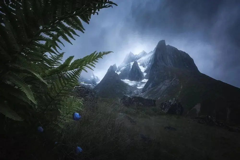 这张照片就是月光下的巴基斯坦Paiju峰,云雾缭绕非常的梦幻,感觉像是动画中的场景。
