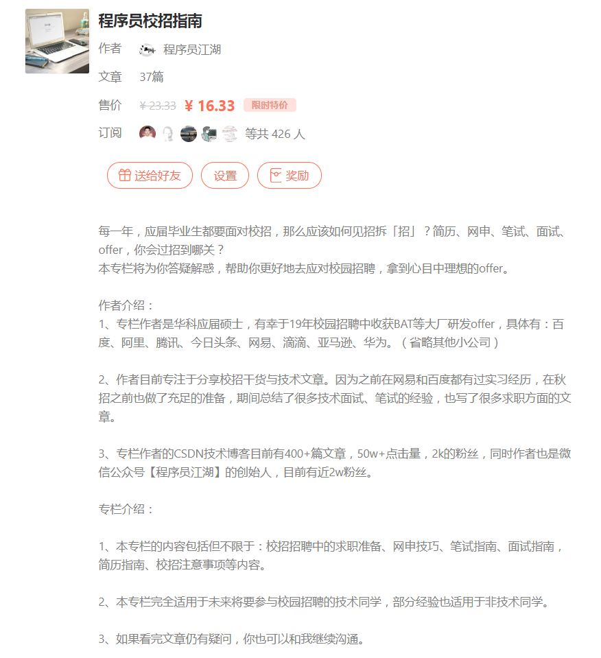 如果你是Java方向的同学,也欢迎你关注我的技术专栏【Java技术江湖】我会在这里分享我的Java学习心得,包括我在秋招期间整理的Java技术文章,以及未来在阿里的技术成长!