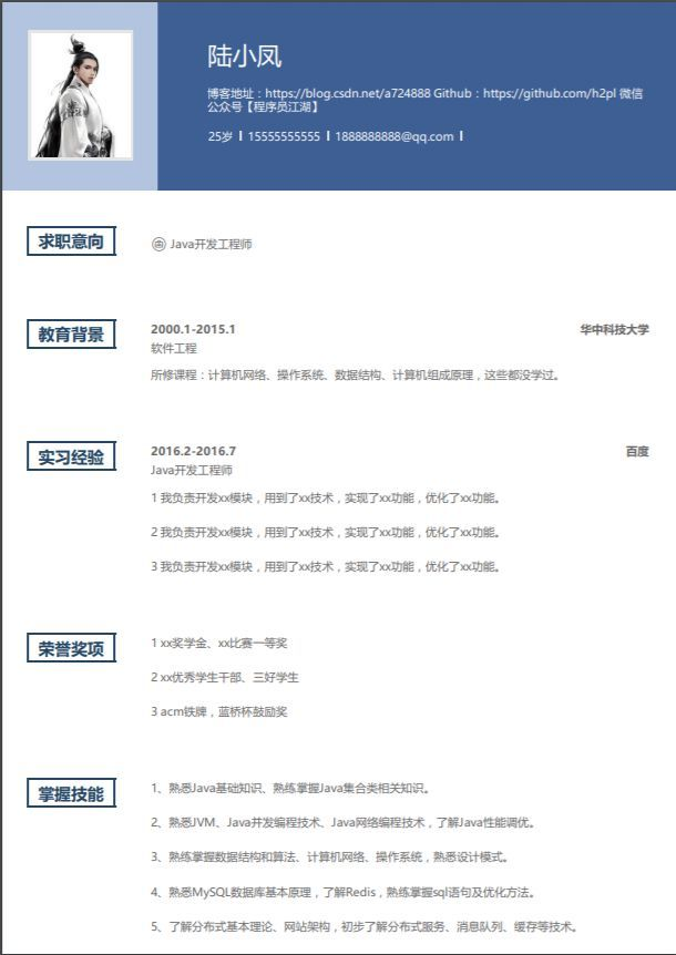 简历模板很多,万变不离其宗。我对简历的总结就是以下几点: