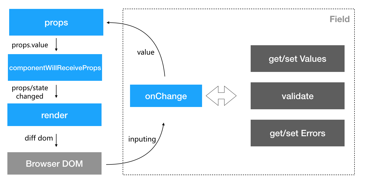 }下面这张图简单表面 Field 和 React 体系之间的关系。