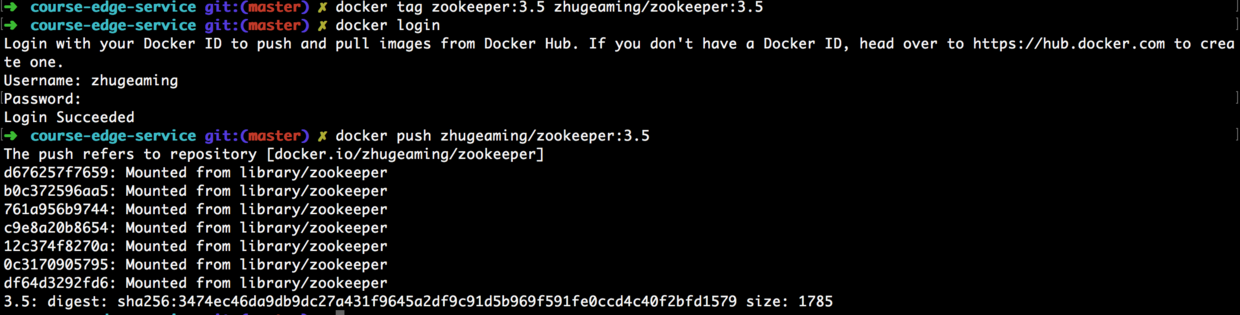docker tag zookeeper:3.5 zhugeaming/zookeeper:3.5