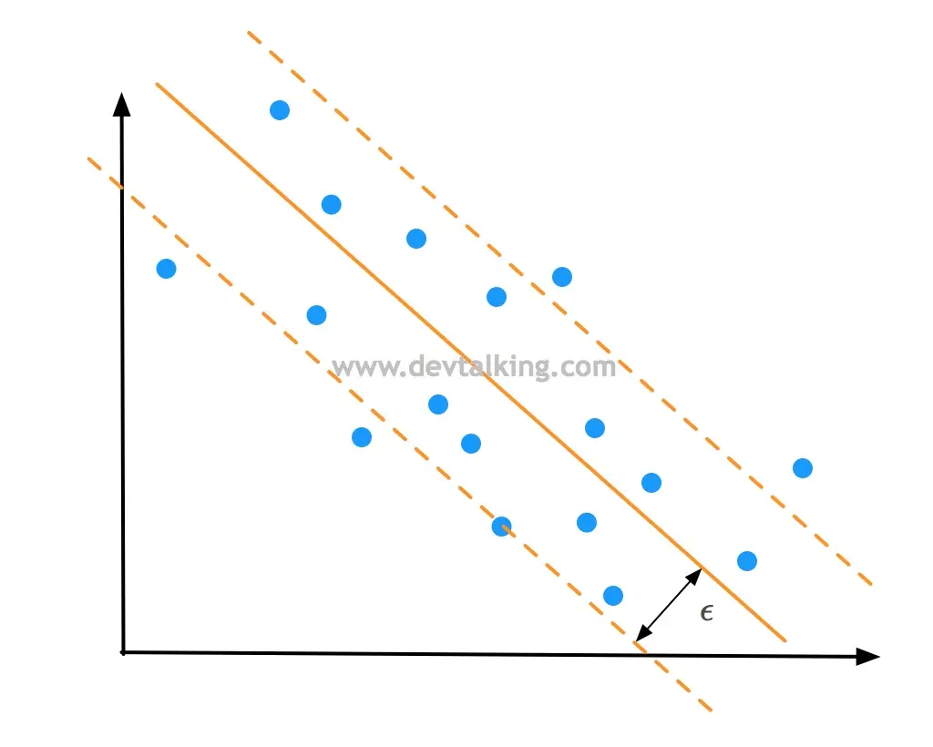 也就是找到一条拟合直线,使得这条直线的Margin区域中的样本点越多,说明拟合的越好,反之依然。Margin边界到拟合直线的距离称为