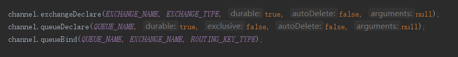 在 Rabbit 基础 API 里面声明一个 Exchange、queue、binding 的代码如下所示