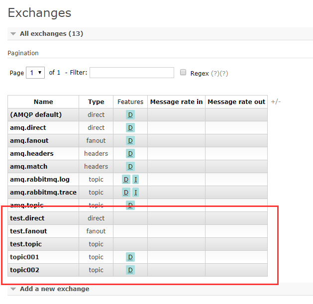 rabbitAdmin.declareExchange(new TopicExchange("test.topic", false, false));