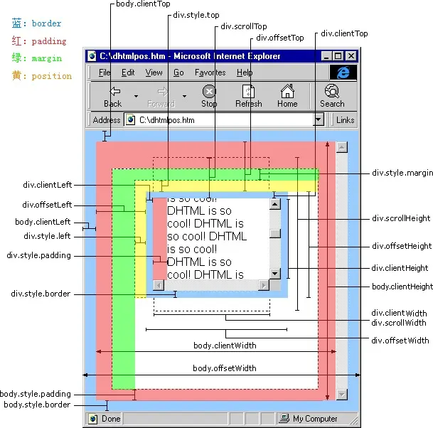 *诸如left、clientLeft、offsetLeft、clientWidth、scrollWidth等,和top、height类似,不再赘述。