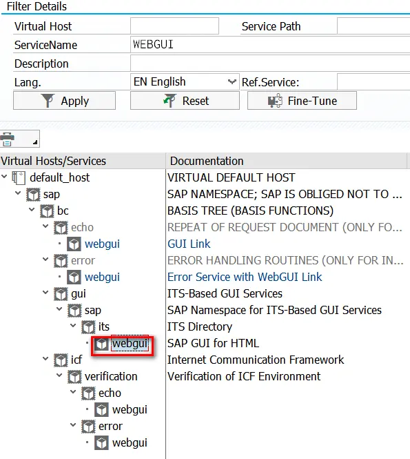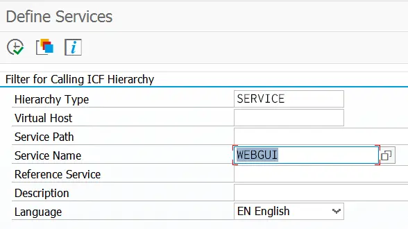 事务码SICF,service name输入WEBGUI,