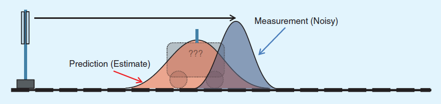 简单来说,有个运动的小车,用来测量小车运动的传感器其实有测量噪声 (Measurement Noise),所以得到的结果是个高斯分布