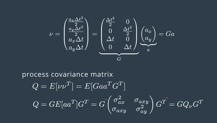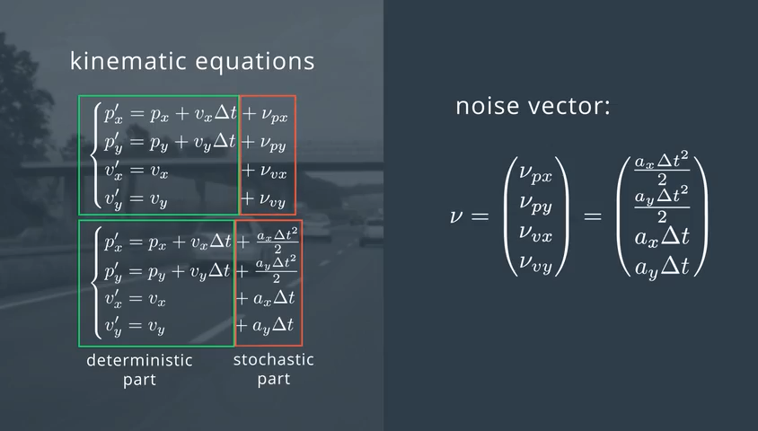 由于状态向量只包含位置和速度信息,实际上加速度在模型中是作为随机噪声的