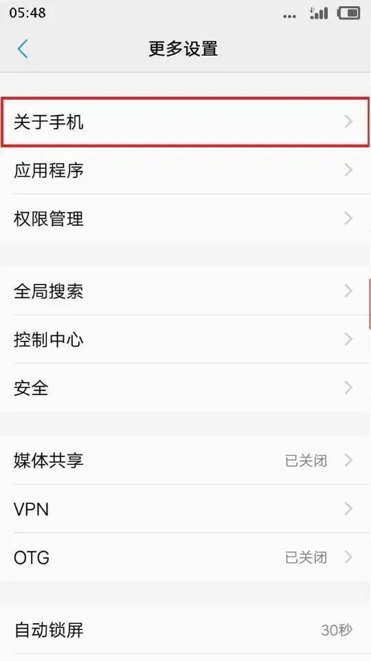 接着,找到关于手机一栏,点击进入关于手机界面。