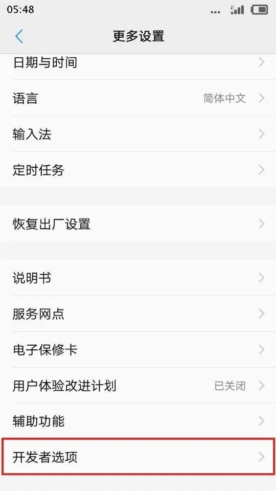 这时候重新进入vivo X9i的设置主界面上,找到更多设置并点击进入,这个时候,我们就可以找到“开发者选项”一栏并进入“开发者选项”.