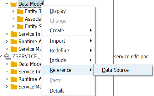 CDS view开发完毕后,只需要在事务码SEGW里将其通过Reference->Data Source加载进去: