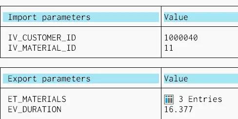 JCoTable codes = exports.getTable("ET_MATERIALS");