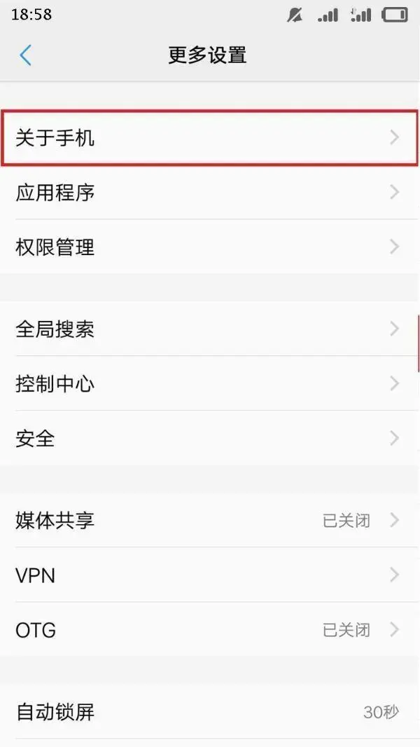 然后,找到“关于手机”这一行,点击进入“关于手机”界面。