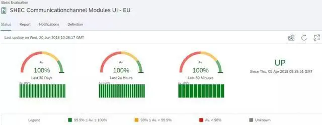 首先,采用微服务架构的产品需要考虑部署在云上的服务是否可达。打个比方,如果部署在云上的服务处于stop的状态,那么客户的系统肯定是无法正常工作的。为了了解云上的服务是否还“活”着,可以使用availability check(SAP内部工具),每间隔一定的时间就对云上的服务发起请求。通过请求返回的响应值来判断云服务的状态,从而达到监控的目的。为了接近实时,间隔的时间可以尽可能的短,比如说每分钟发起一次请求。同时为了避免误判,也可以调整设置,当2或N次以上的请求都显示不可达时,才发出警告提示。这样,当有异常情况出现时,比如确实有服务“挂”了, availability check就可以第一时间通过邮件通知到相应的团队。或者如果还连接了SPC系统,还可以在SPC中创建ticket通知到一线的云支撑团队。