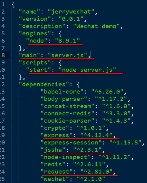 1. 创建一个新的nodejs工程,下列package.json文件里高亮部分是用于消息服务器通信的重要部分。